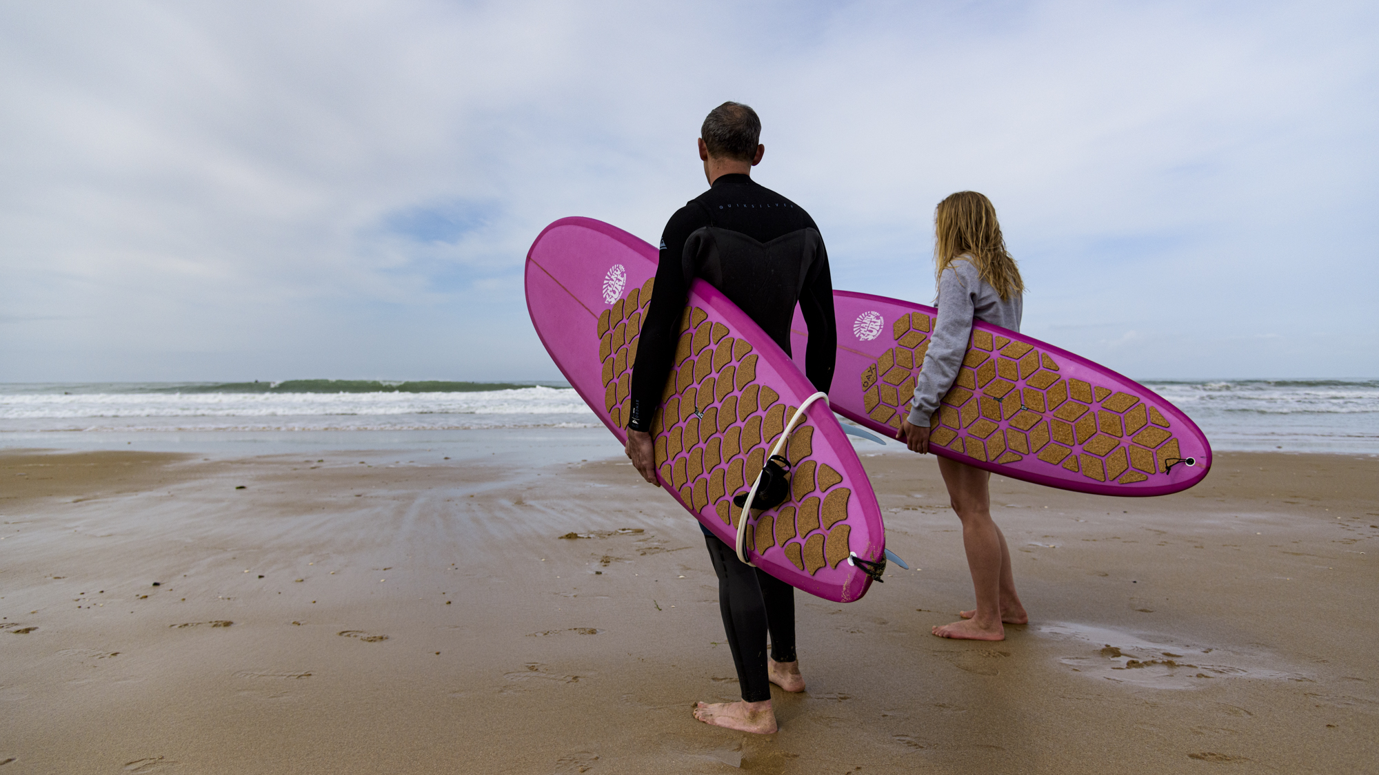 Matthieu Balluffier, fondateur de OAX surf. Ingénieur pendant plus de 20 ans dans le domaine de l’Architecture navale, j’ai commencé par shaper des surfs en bois en 2021. Naturellement, j’ai commencé à fabriquer mes premiers grips en liège. Après plusieurs mois d’études, de recherches et de développements, j’ai conçu une gamme de grips en liège pour tous types de boards dans un format très simple à poser.